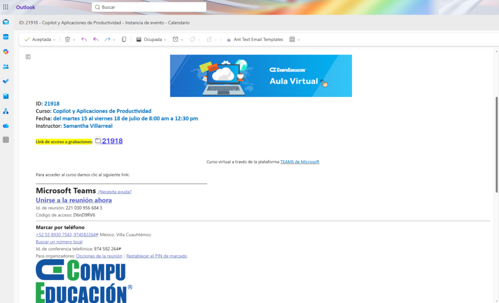 Brindé capacitación en línea de curso de Copilot y Aplicaciones de Productividad de 18 horas para empresa mexicana a través de CompuEducación partner de Microsoft.