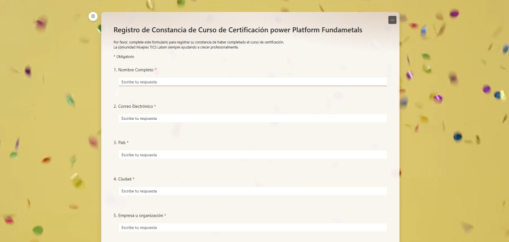 Organicé el curso de certificación gratuito: Power Platform Funfamentals PL-900 a través de la comunidad Mujeres TICS Latam, mismo queestoy impartiendo en sesiones en vivo cada viernes del 14 de marzo al 18 de abril 2025