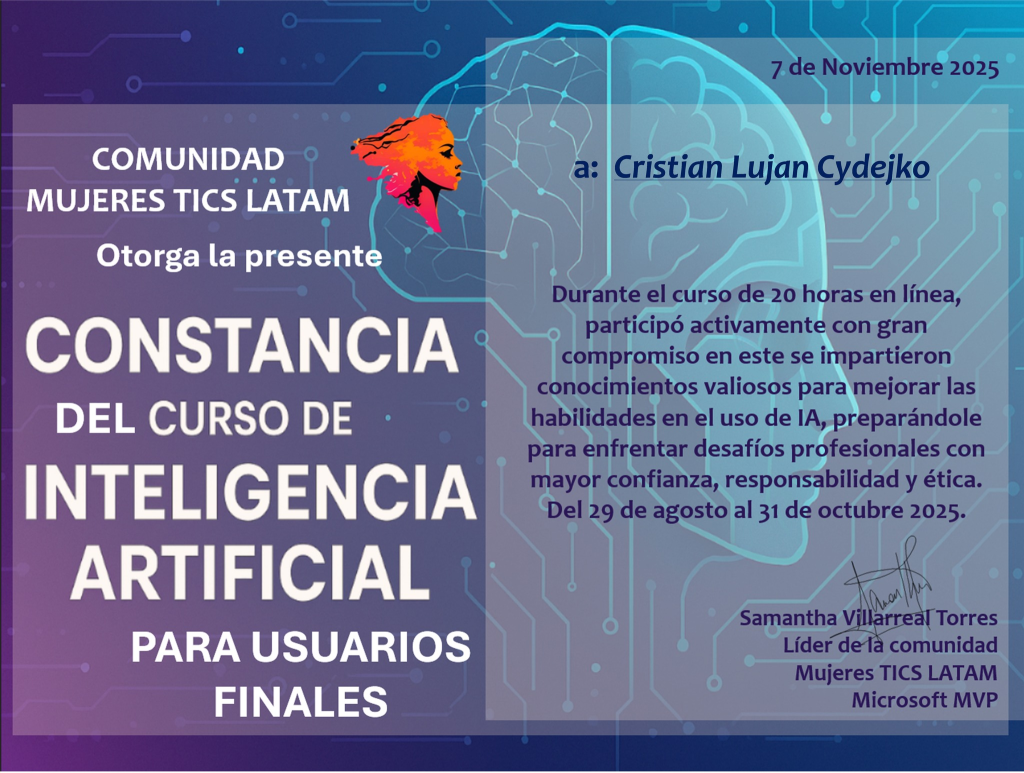 Organicé esta capacitación en línea para usuarios finales que desean mejorar sus habilidades en el uso de Inteligencia Artificial, contmaos con algunos invitados y en otros caso tuve la oportunidad de brindar las sesiones.